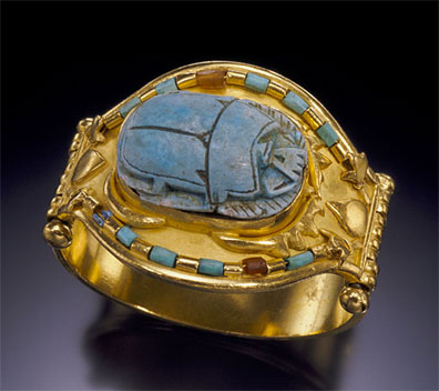 21k and 22k gold Egyptian bracelet with turquoise scarab, turquoise and carnelian beads.