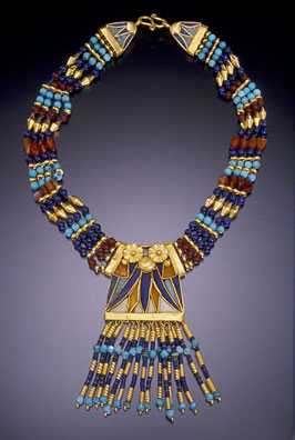 Egyptian necklace with tourquoise, carnelian and lapis inlay.