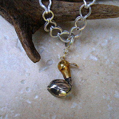 Duck pendant with a round belly, silver, 22k, raised, constructed