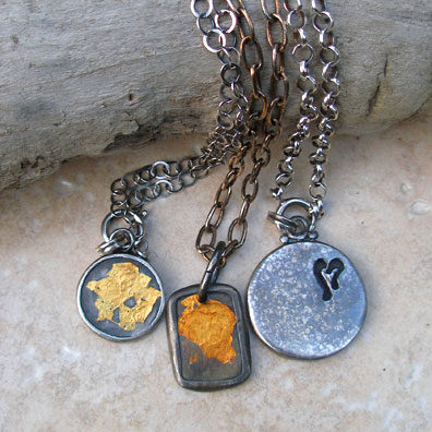 Silver, blackened, 24k gold.