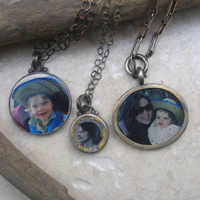 Pendant photo etchings.