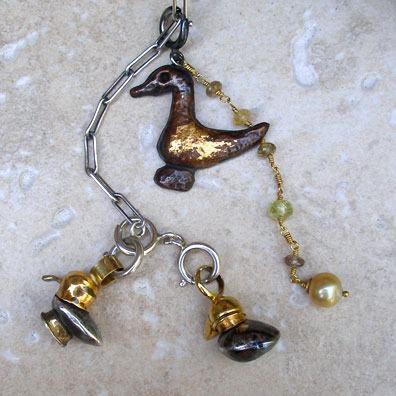 22k, 24k, blackened silver small raised constructed duck pendants.