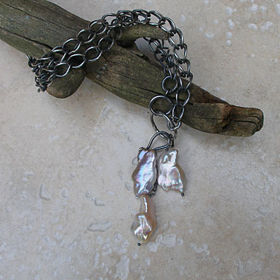 keishi pearls on blackened silver large link-in-link handcrafted chain
